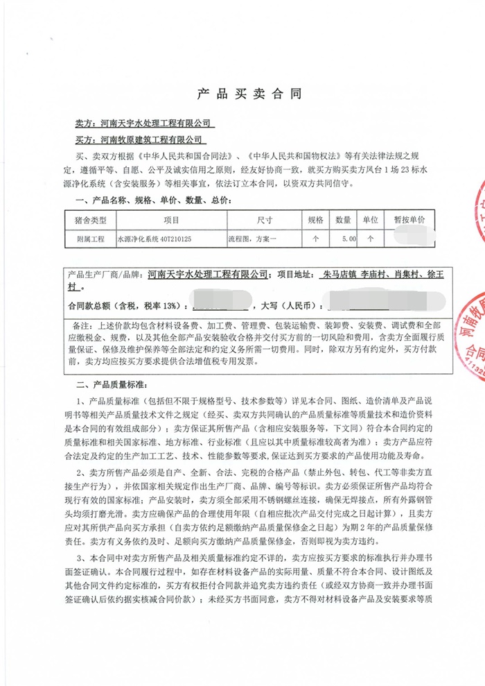 牧原食品股份有限公司(鳳臺)合同【1】