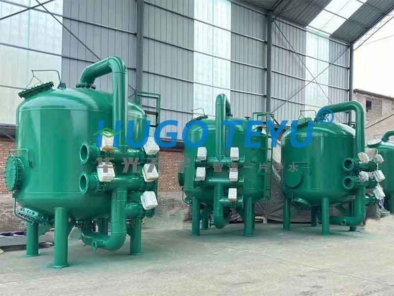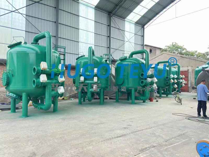 當系統處于過濾狀態時,加壓水從濾罐進口流入布水系統,均勻的到達濾料層。當水流過濾料層時,懸浮物被濾料截留。過濾器底部有帶縫隙的集水器,過濾后的干凈水被均勻收集,并流出過濾器。