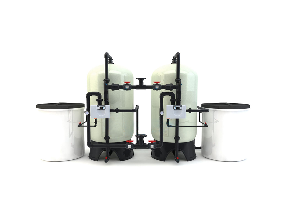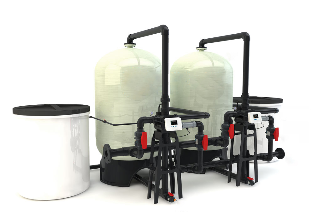 雙閥雙罐軟化水系統(tǒng):顧名思義即兩套軟化水系統(tǒng)并聯(lián)安裝,然后對兩軟化水系統(tǒng)的控制方式進(jìn)行互鎖,使兩套軟化水系統(tǒng)在不同的時間進(jìn)行反洗、再生,從而達(dá)到不間斷供水的目的。雙閥雙罐型軟化水可用于工業(yè)鍋爐的的供給水,也可用于空調(diào)的冷卻水,還可以用于洗衣房的洗衣用水,還可以用于沐浴,在食品、釀酒行業(yè)中也得到廣泛使用,也被用在化工行業(yè)等應(yīng)用范圍非常廣泛。