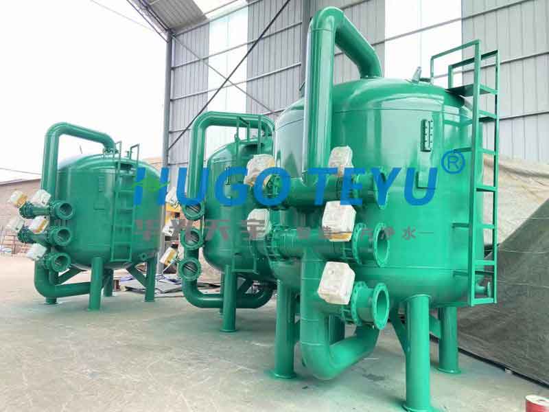 當系統處于過濾狀態時,加壓水從濾罐進口流入布水系統,均勻的到達濾料層。當水流過濾料層時,懸浮物被濾料截留。過濾器底部有帶縫隙的集水器,過濾后的干凈水被均勻收集,并流出過濾器。